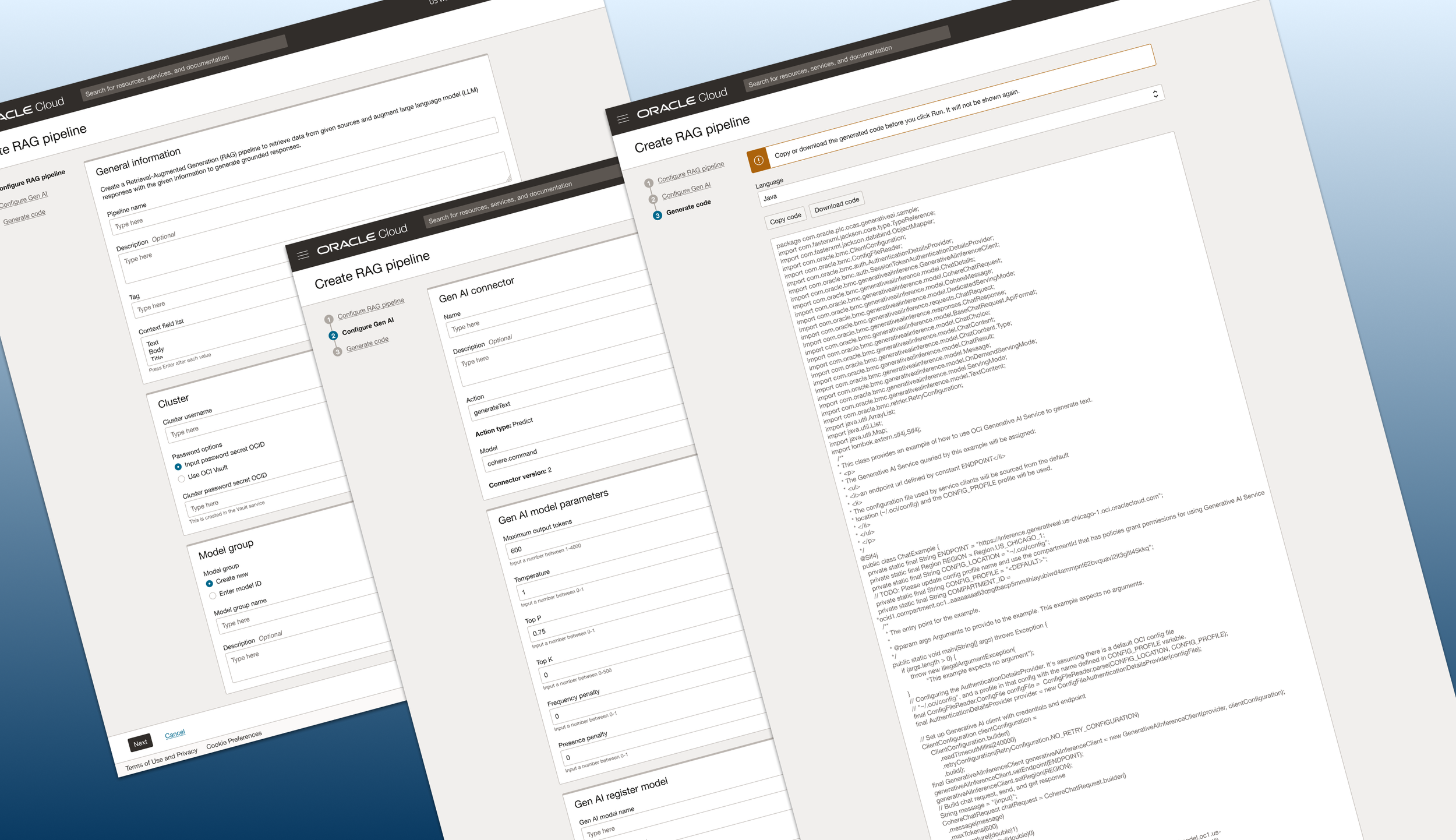 Bringing AI into Oracle Cloud Infrastructure’s (OCI) OpenSearch by designing a guided RAG pipeline builder that lets users configure, validate, and generate a working retrieval-augmented generation pipeline without writing code.