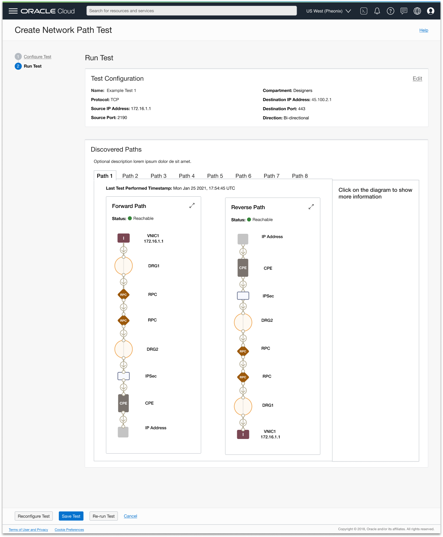 I led UX design for Network Path Analyzer, giving customers a visual way to simulate and troubleshoot network paths in Oracle Cloud Infrastructure (OCI) before sending live traffic, reducing dependency on support for diagnostics.