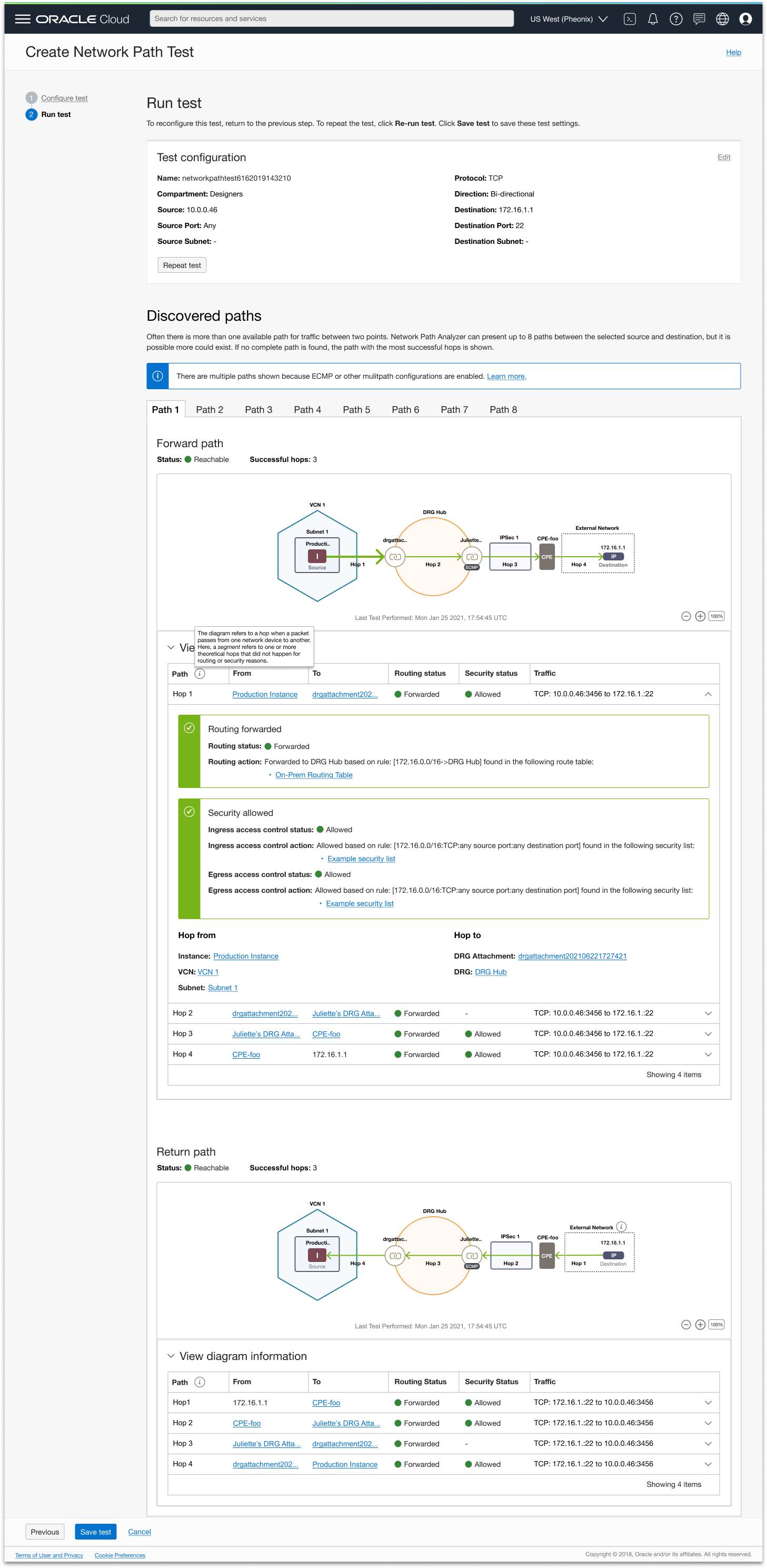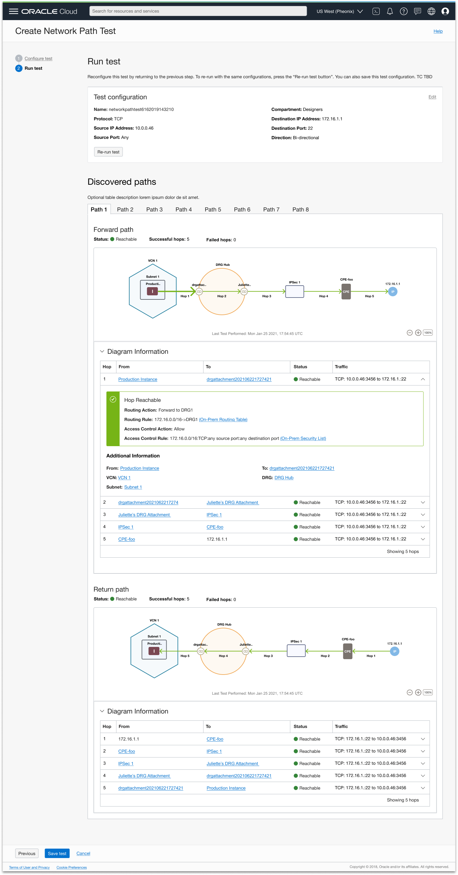 Design didn’t end at initial launch. I continued to improve the service through feature enhancements like cross service linking, helping users onboard to the service more easily though a prerequisites workflow, and supporting larger scale path tests to support bigger OCI customers.